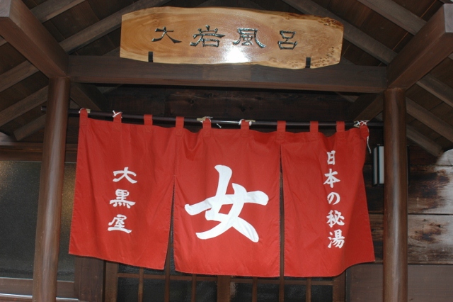 2012.05.16 甲子温泉「大黒屋」 ※画像をクリックすると拡大表示されます。 ※画像をクリックすると拡大表示されます。 大岩湯の脱衣所です。男女とも、ついたての向こうで衣類を籠に入れます。バスタオルも禁止です。(平成24年5月4日 永田撮影 ニコンD70)
